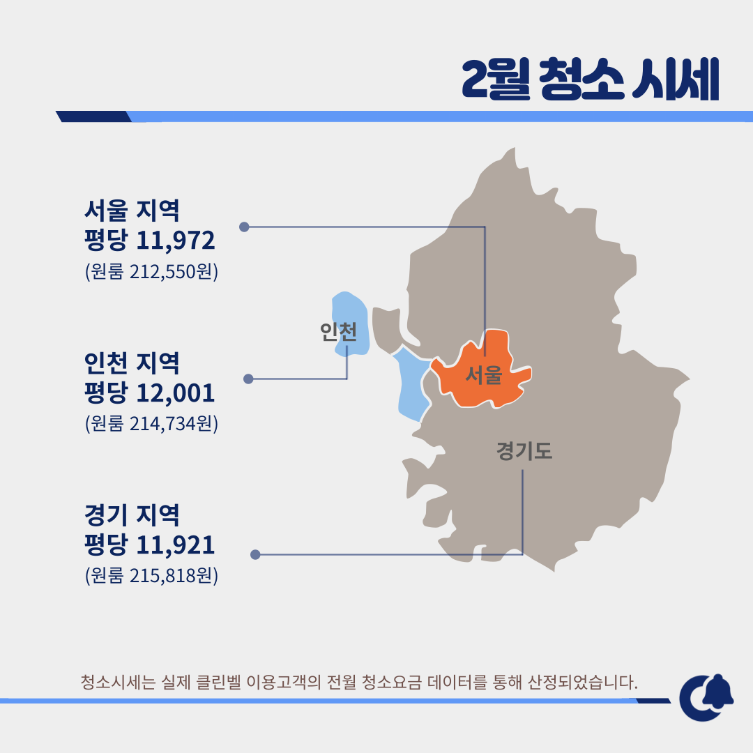 오늘은 2월 수도권 청소요금의 평균시세를 안내해드리는 시간입니다.
