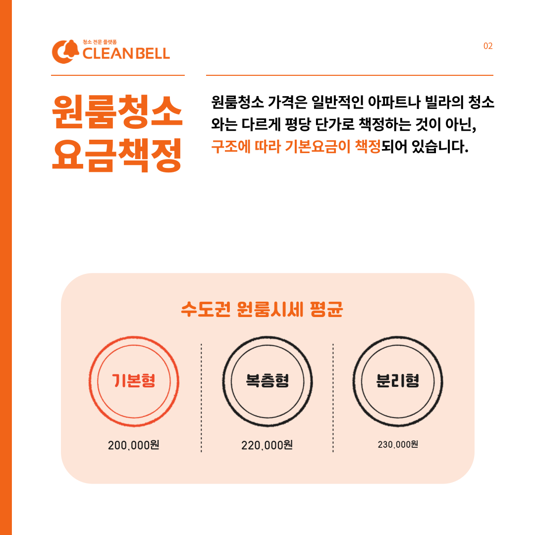 먼저 저희 클린벨을 이용해주신 고객님들의 원룸청소 평균가격을 보면
