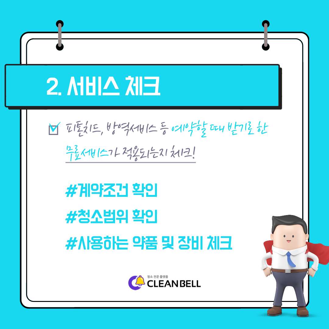 청소 시작 전 청소 서비스도 체크해야 합니다.