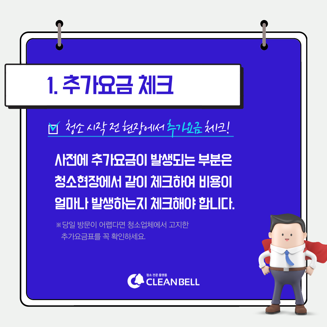 청소 시작 전 사전에 추가요금이 발생되는 부분은 청소현장에서