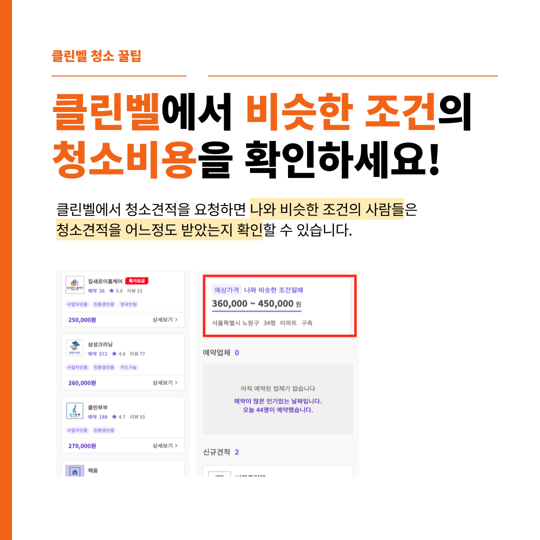2. 클린벨에서 나와 비슷한 조건의 청소견적을 확인하세요