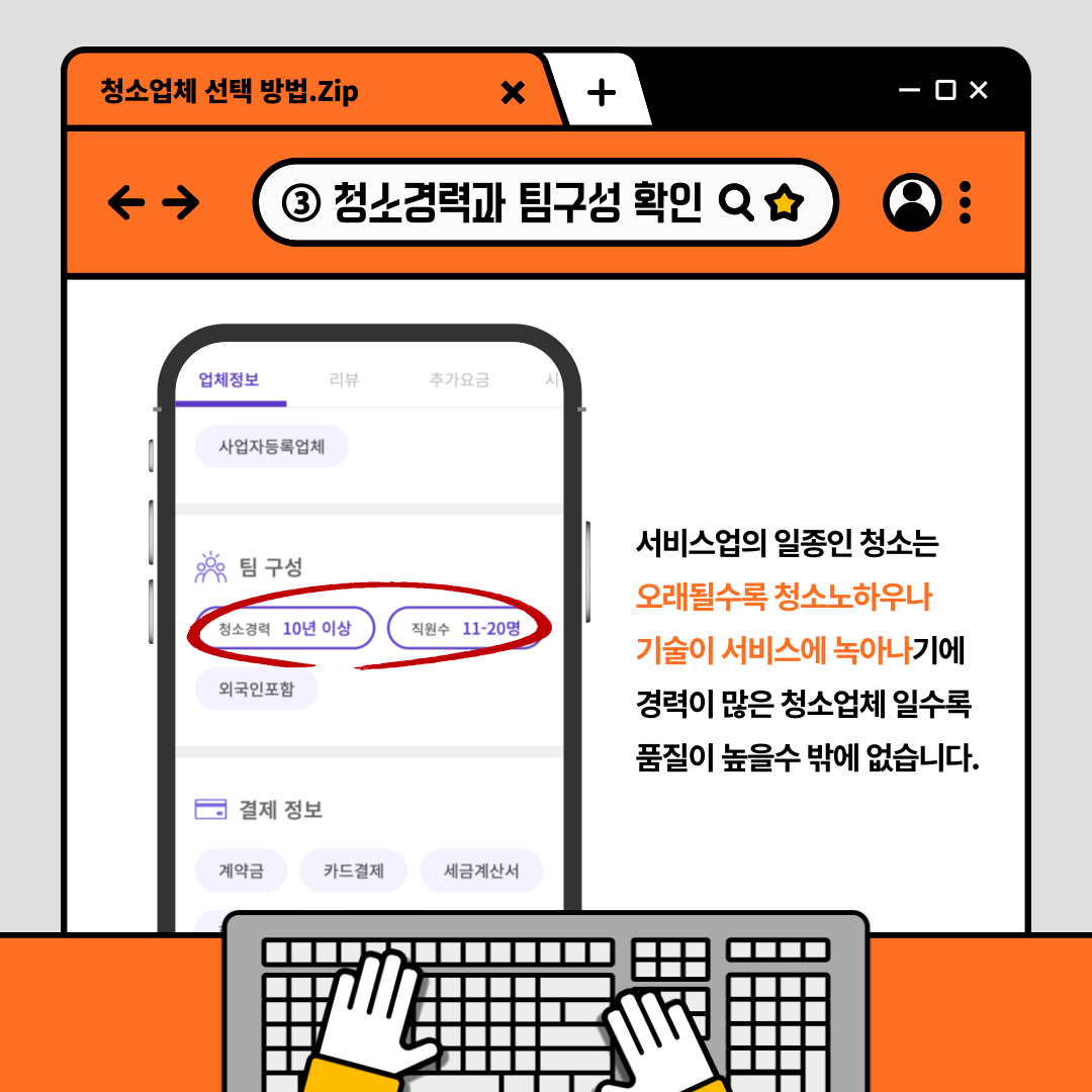 3. 청소업체의 경력과 팀구성을 확인하세요!