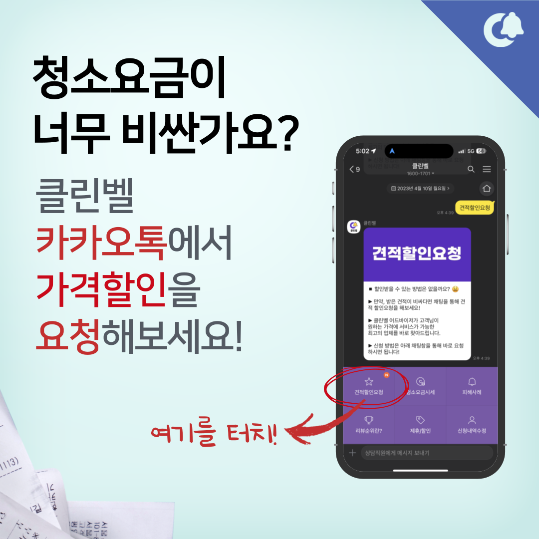 언제든 클린벨에서 견적받고 부담없이 카톡으로 문의해주세요~
