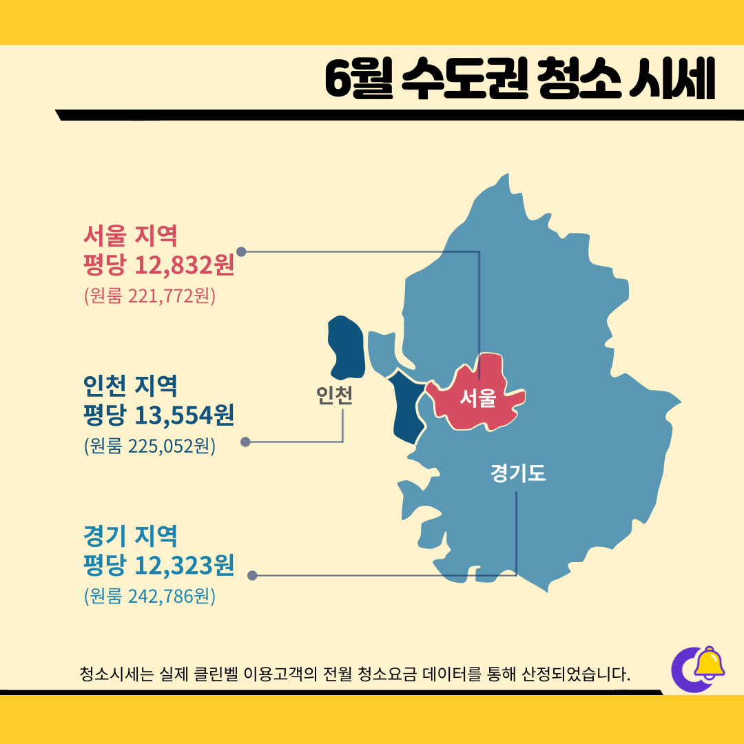 수도권(서울특별시, 경기도, 인천광역시)지역의 6월 입주청소비용의 평균시세를 알려드리겠습니다.