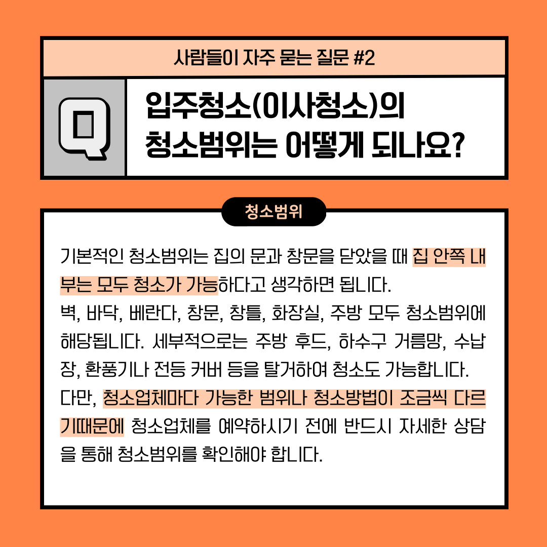 2. 입주청소를 하게되면 청소업체에서 해주는 범위는 어떻게되나요?
