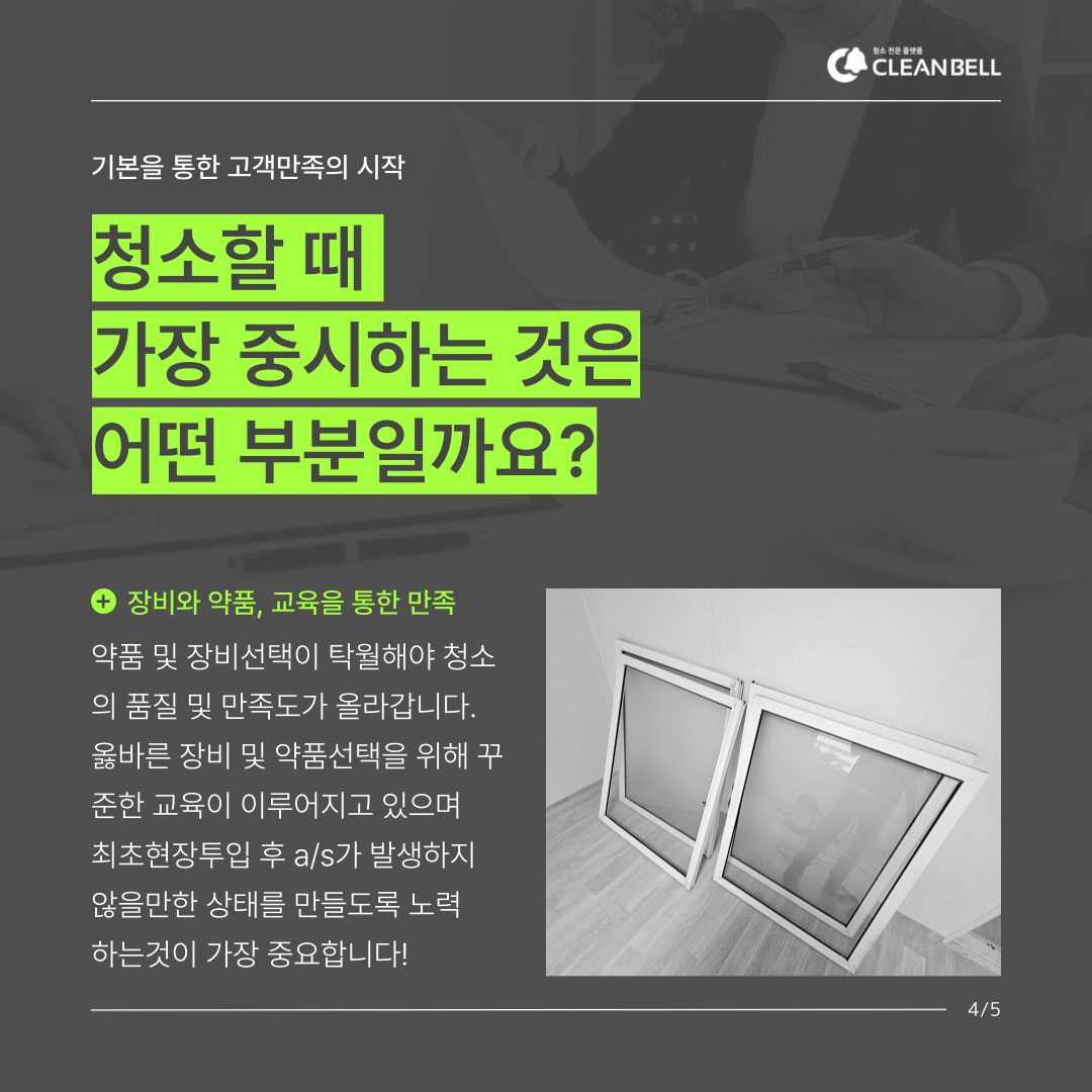 약품 및 장비선택이 탁월해야 청소의 품질 및 만족도가 올라갑니다.