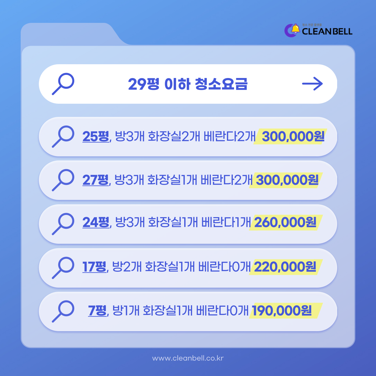 평수와 함께 집의 구조를 고려하여 견적을 내야 정확한 청소비용을 알 수 있습니다!