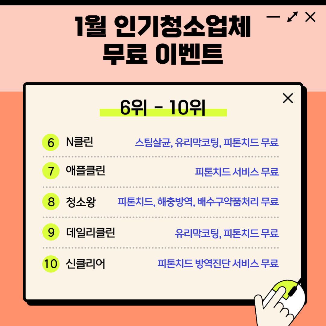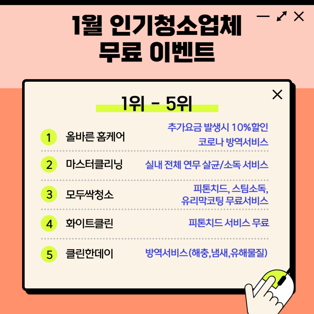 지난달에 이어 1월달에도 청소종류별로 다양한 청소업체 이벤트가 있으니,