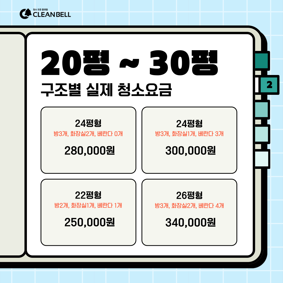 평수와 함께 집의 구조를 고려하여 견적을 내야 정확한 청소비용을 알 수 있습니다!