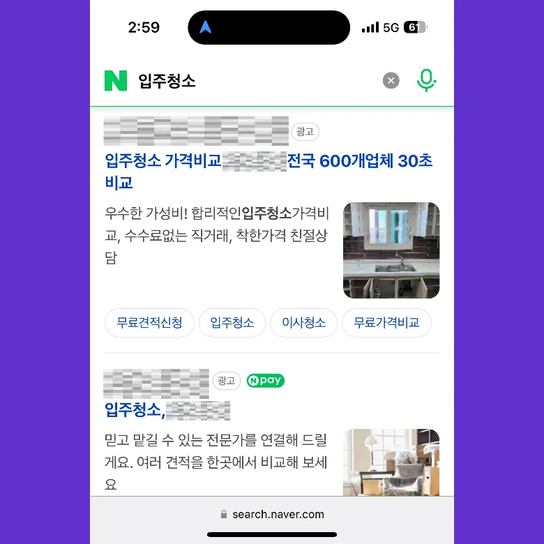 포털에 입주청소라고 검색하면 항상 최상단에는 다양한 견적비교 싸이트가 나온다.