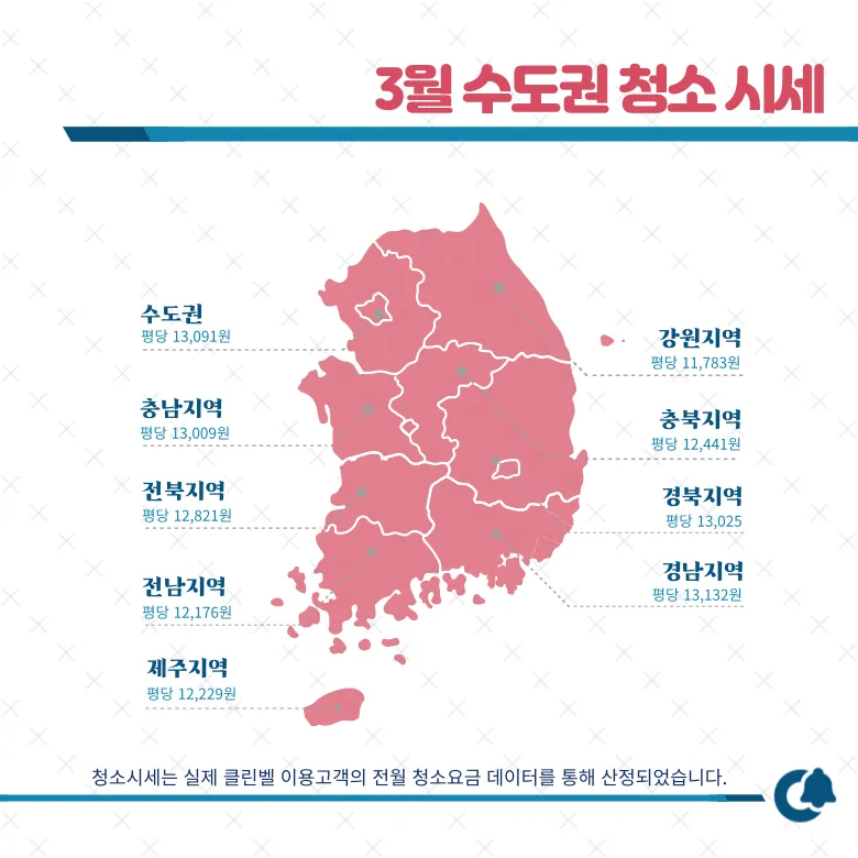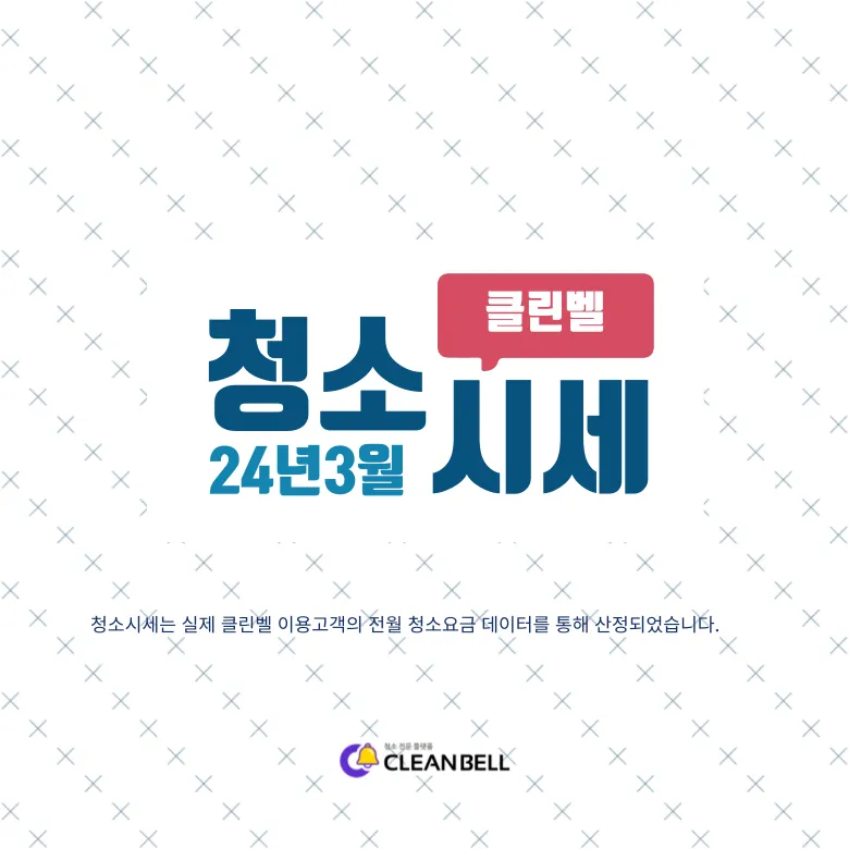 오늘은 클린벨 이용고객의 평균가격 데이터를 통해 3월 입주청소비용의 평균시세를 알려드리겠습니다.