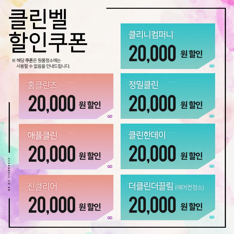* 클린벨 할인 쿠폰은 클린벨 카카오톡 하단 > 할인쿠폰에 있습니다.