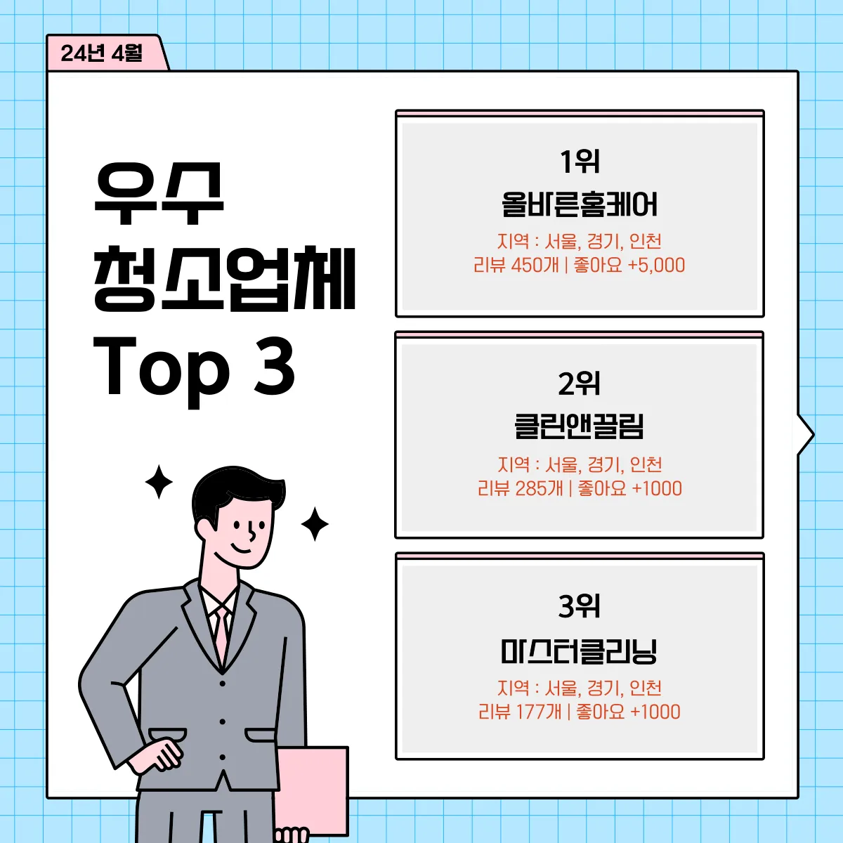 청소업체 랭킹을 소개해 드리는 시간입니다.