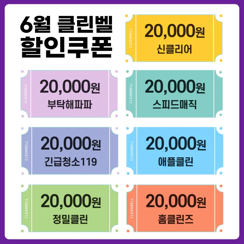 * 클린벨 할인 쿠폰은 클린벨 카카오톡 하단 > 할인쿠폰에 있습니다.