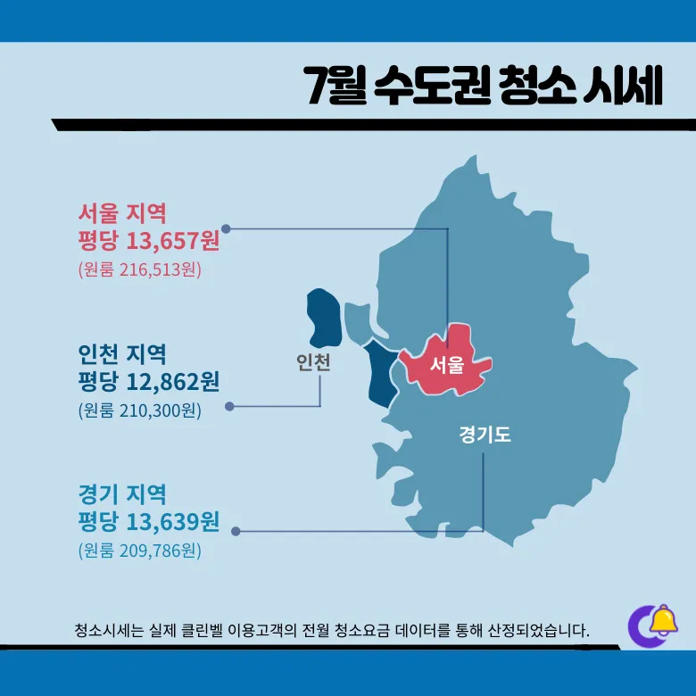 청소요금시세는 실제 클린벨 이용고객의 전월 청소요금 데이터를 통해 산정되었으며,