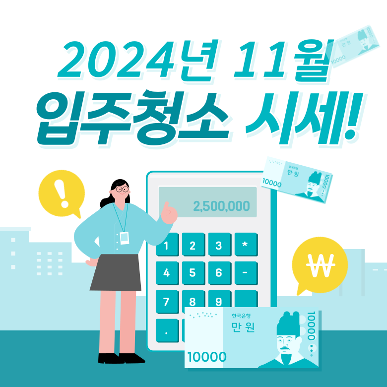 오늘은 지난달 이용고객님들의 데이터를 통해 11월 입주청소비용의 평균시세를 알려드리는 시간입니다.