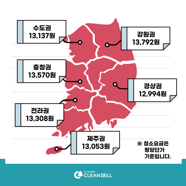 청소요금시세는 실제 클린벨 이용고객의 전월 청소요금 데이터를 통해 산정되었으며,