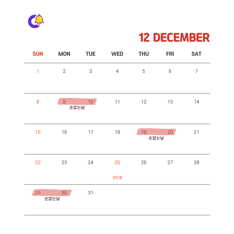 오늘은 2024년 12월 손없는날은 언제인지 알아보는 시간입니다.