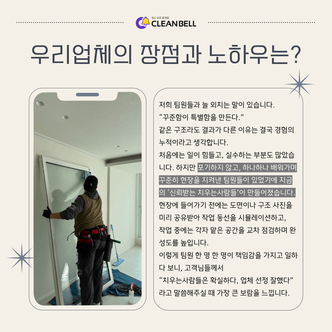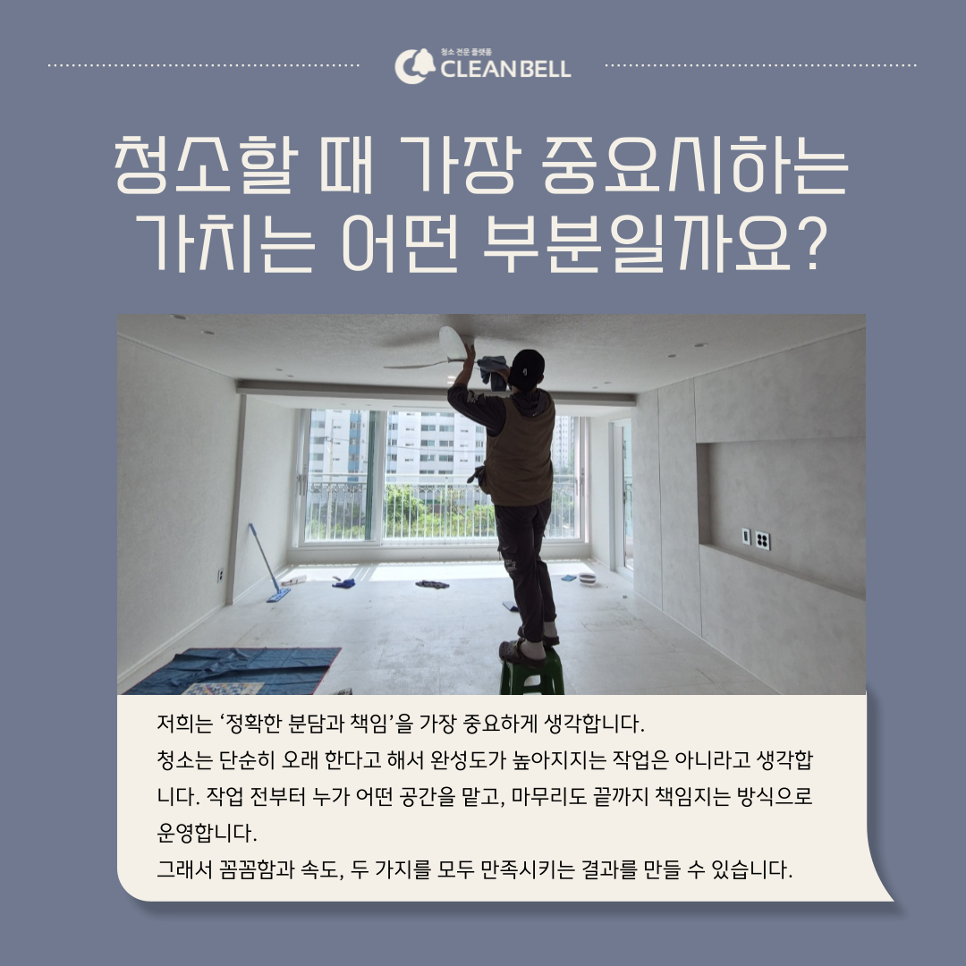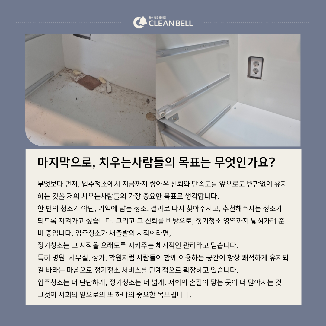 한 번의 청소가 아닌, 기억에 남는 청소, 결과로 다시 찾아주시고, 추천해주시는 청소가 되도록 지켜가고 싶습니다.